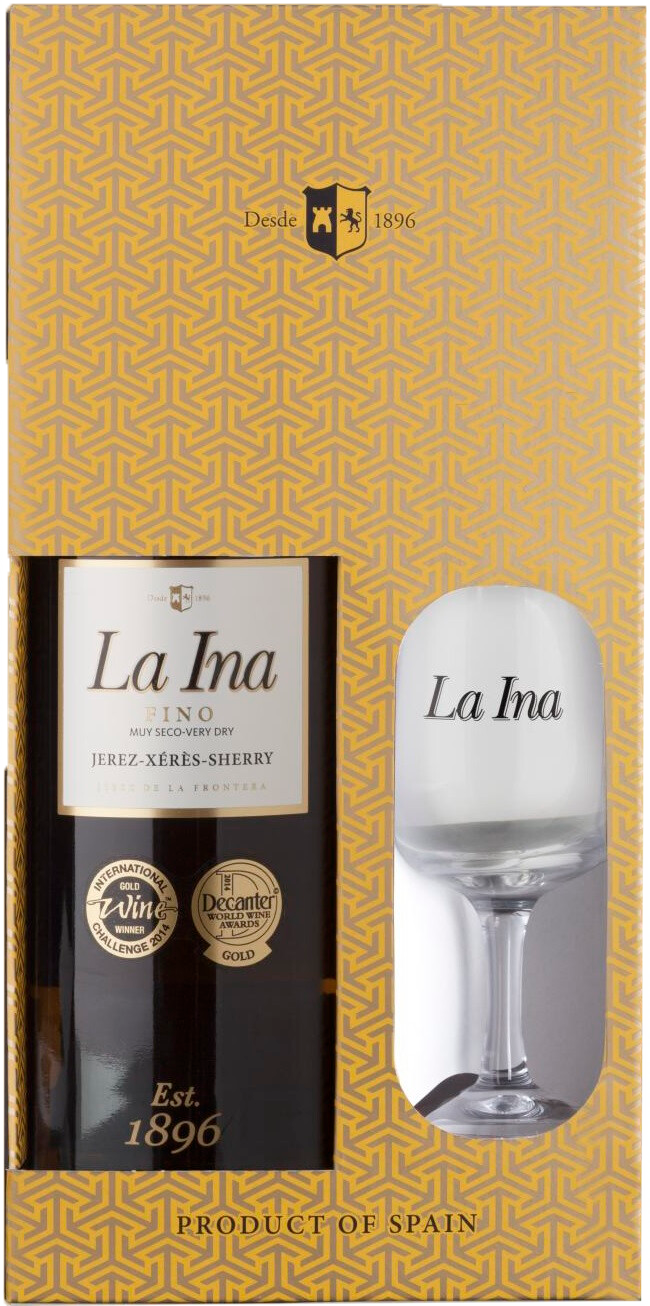 Вино "Херес "Lustau La Ina Fino" в подарочной коробке с бокалом"